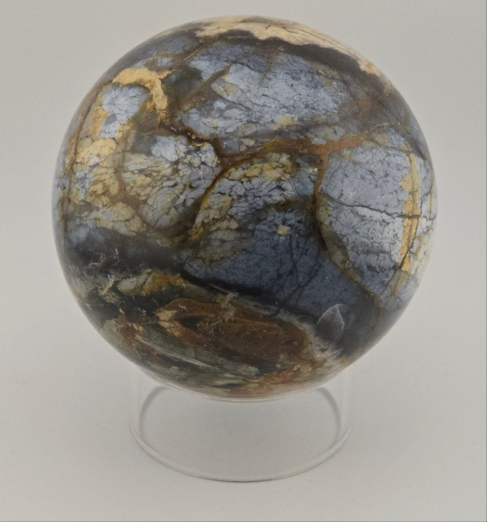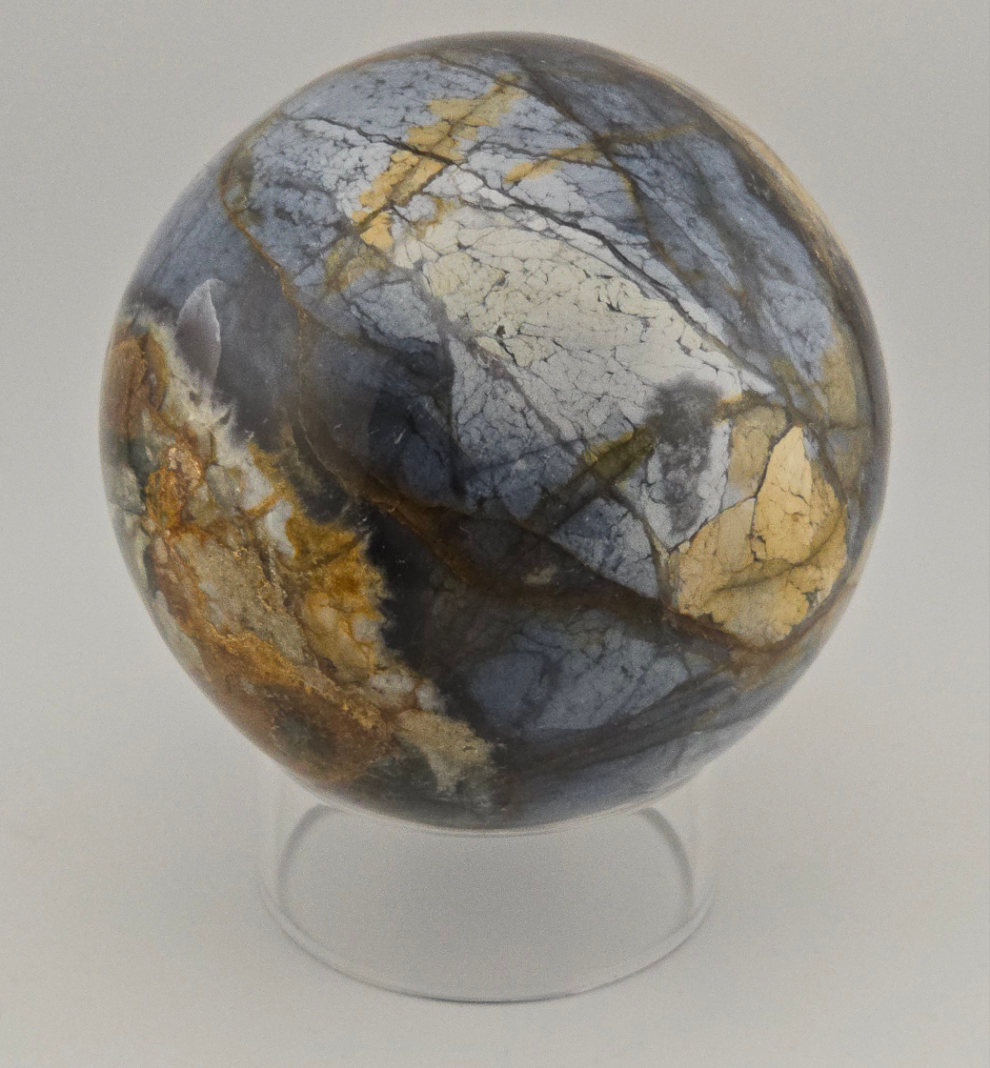 Often regarded as a stone of change and empowerment, Pietersite is said to aid you through life's transitions, and personal growth. Also known as the "Storm Stone," it is believed to heighten awareness, and foster a deeper connection with one's inner self. It is perfect for any office, or home. This is a LARGE sphere at 4.8" in diameter, and weighing 5.2lbs without the stand!!! Only one of these rare beauties on-hand, so the one you see is the one you will be receiving.