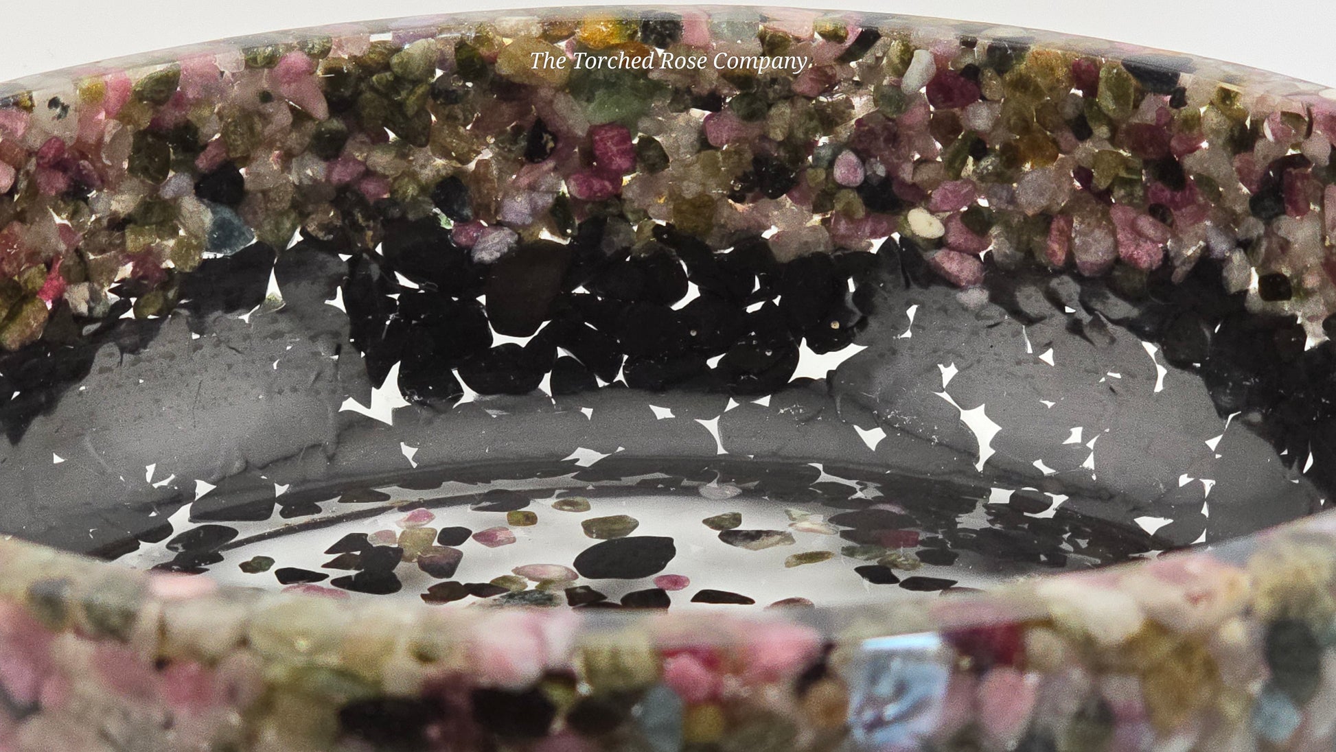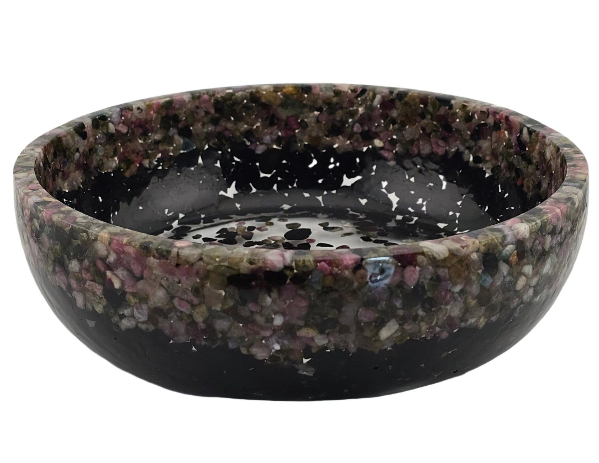 Enhance the energy in your home with our 8" Decorative Bowl! Featuring a lower section made with Black Tourmaline chips and Multi-Color Tourmaline chips for the upper section. This bowl is the perfect accent piece to elevate any room with grounding and protective energy. Use it as a catch-all or create a striking display. The stone chips are bonded using high quality, anti-yellowing, clear epoxy resin to ensure long lasting beauty of this piece.