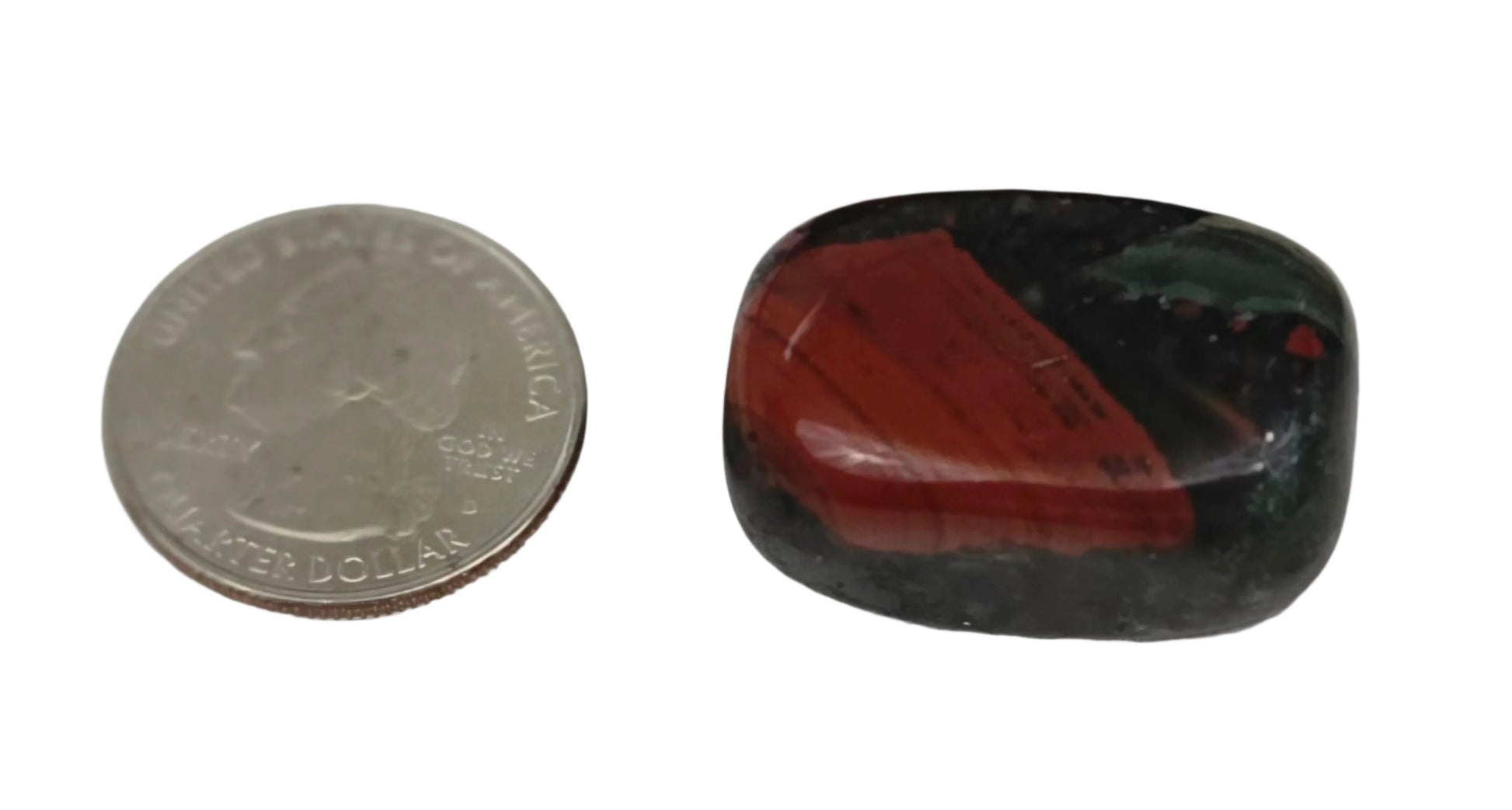 African Bloodstone is a type of jasper that has a rich history. Found in statues and amulets in Roman ruins, cherished as a protective talisman in ancient Egypt, and once believed to be formed from the blood of fallen warriors.
