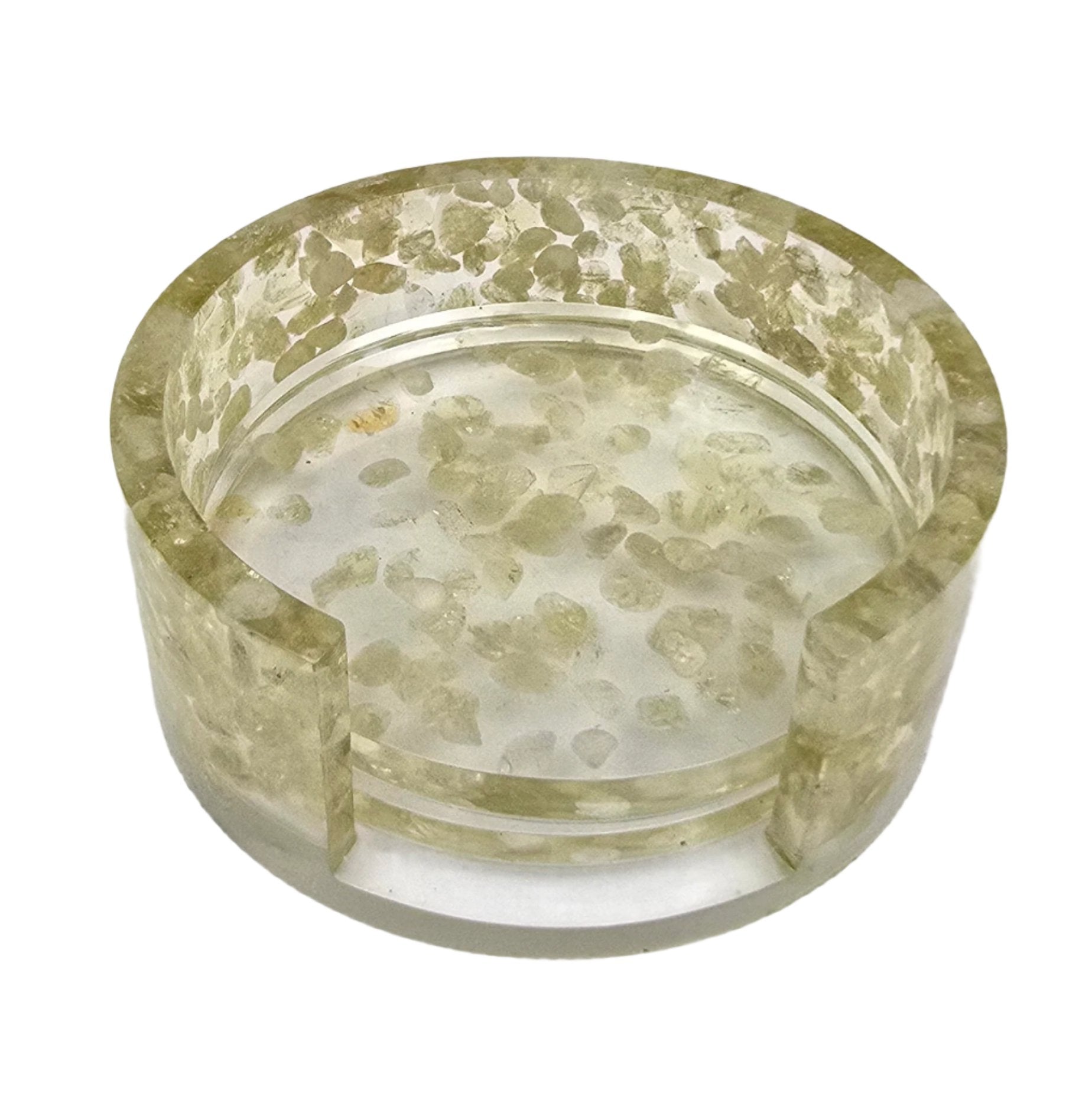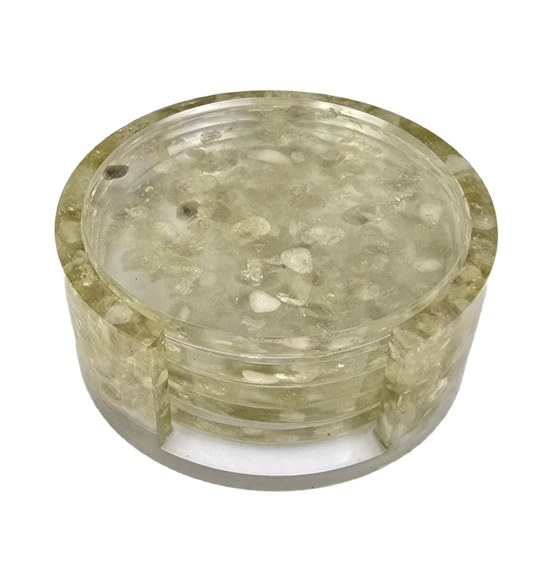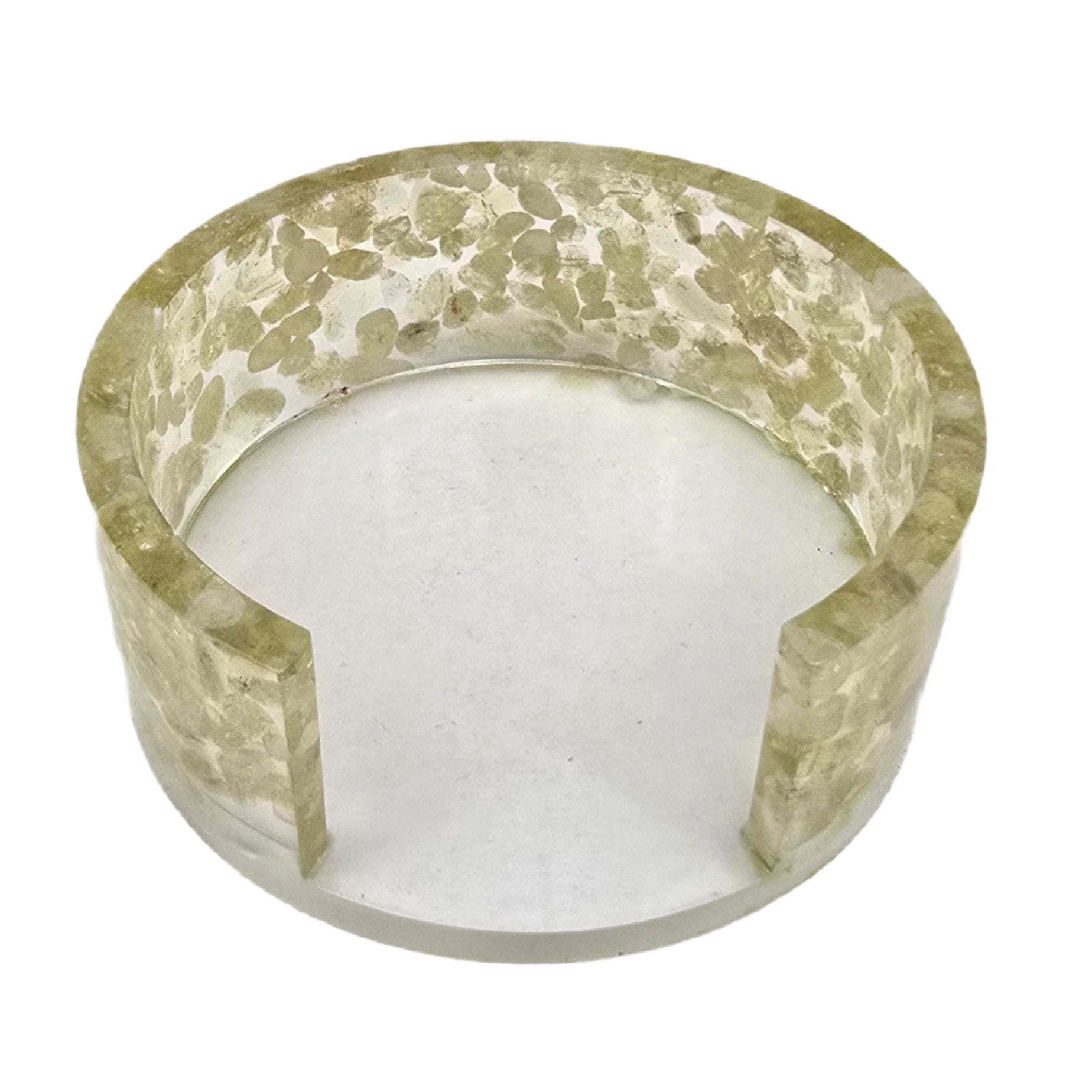 Elevate your living space with our Circle Coaster Set in Citrine! Each set includes a holder, and 5 coasters made with natural Citrine chips bonded with durable epoxy. Let the power of Citrine bring abundance, prosperity, and success into your home, while promoting your self-confidence and manifesting your desires.