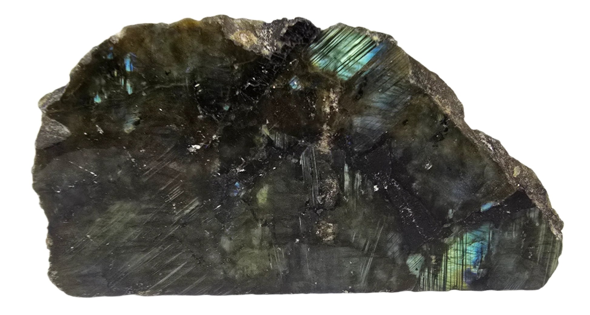 Elevate your space with our Labradorite Standing Slab. This stunning natural stone is a powerful symbol of transformation and inner strength, believed to enhance your intuition and connection to higher realms. Adorned with unique iridescent hues, it inspires wonder and promotes spiritual growth. Perfect for activating your Crown and Third-Eye Chakras.