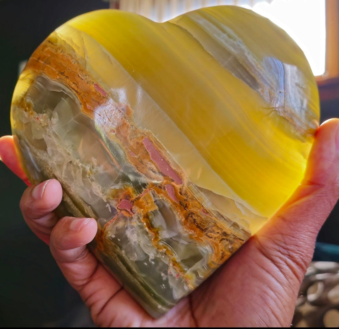 There's no other way to describe it. These Green Calcite Hearts are STUNNING! Each has been carved from one solid piece that was nearly twice the size of the finished product. Green Calcite is known to stimulate the Heart Chakra, fostering compassion, understanding and a deep connection with divine love. These 2 are a rare find.