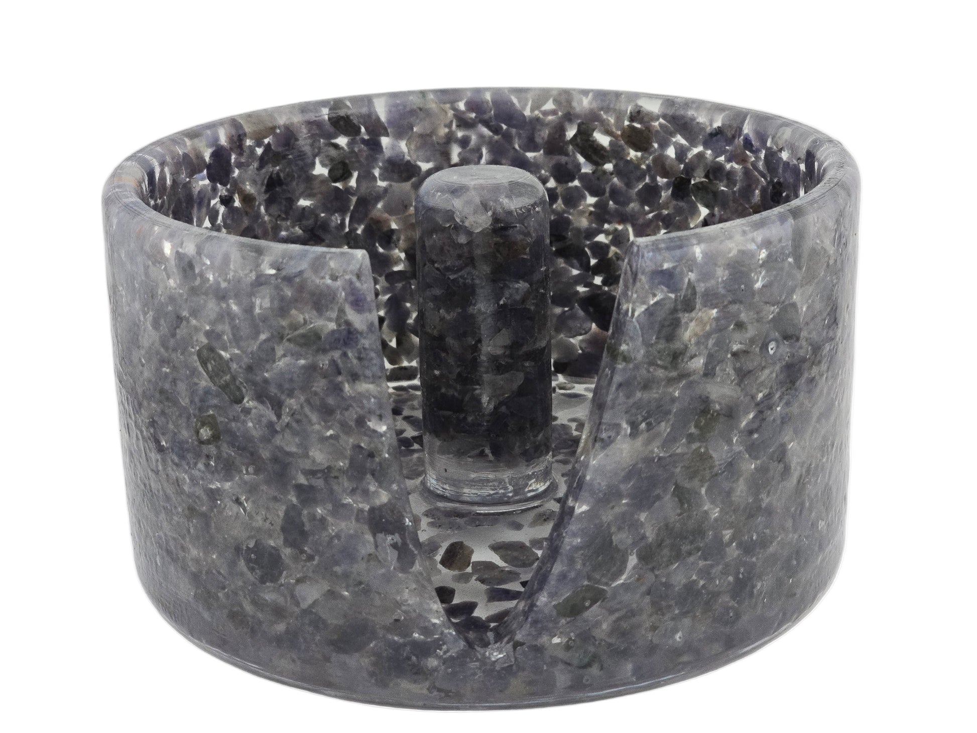 Elevate your kitchen with the Large Paper Towel Holder featuring beautiful Iolite semi-precious gemstone chips encased in durable epoxy resin. Designed to fit most triple-sized rolls, its sturdy 2.5lb weight keeps it securely in place during use. The protective resin guards against physical wear and UV damage, ensuring lasting beauty. Beyond its function, Iolite is believed to sharpen intuition, mental clarity, and inner vision, bringing a touch of inspiration to your everyday routine. A practical and elegant addition that blends style with purpose.