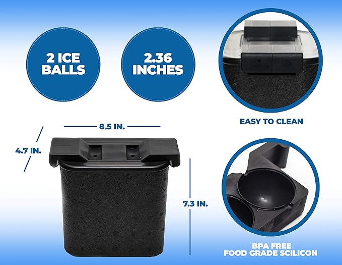 Premium Round Sphere Ice-Cube Maker Mold- 2 Crystal Clear Ice Cubes