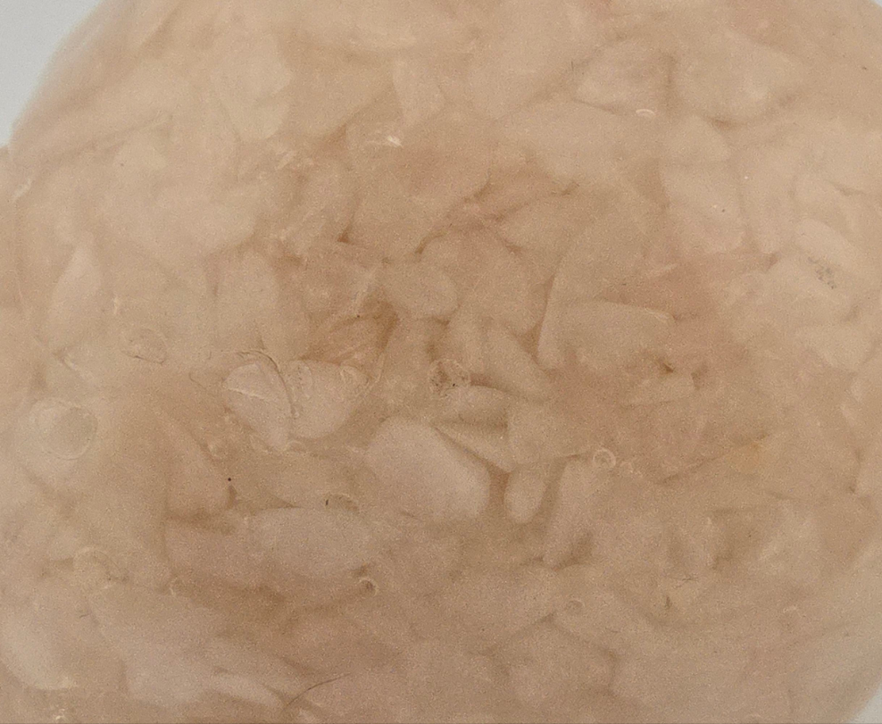 This Skull made with Grade A Rose Quartz, which represents self-care and all types of love. Rose Quartz activates the Throat and Heart Chakra, making it worthy of display for the holidays or year round. Embrace the power of Rose Quartz and enhance your life with this unique piece! Chips bonded with durable epoxy to ensure a long life. Measures 4" long, 2.75" high, and 2.25"