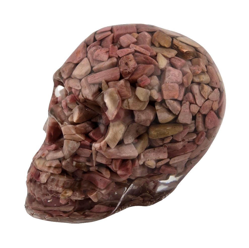 Elevate your space in a fun and unique way with our Pink Opal Skull. Pink Opal, also known as the "Stone of Spiritual Awakening", is believed to inspire emotional healing, empathy and balance. Handcrafted with durable epoxy and Pink Opal chips, this unique piece is both elegant and long lasting.
