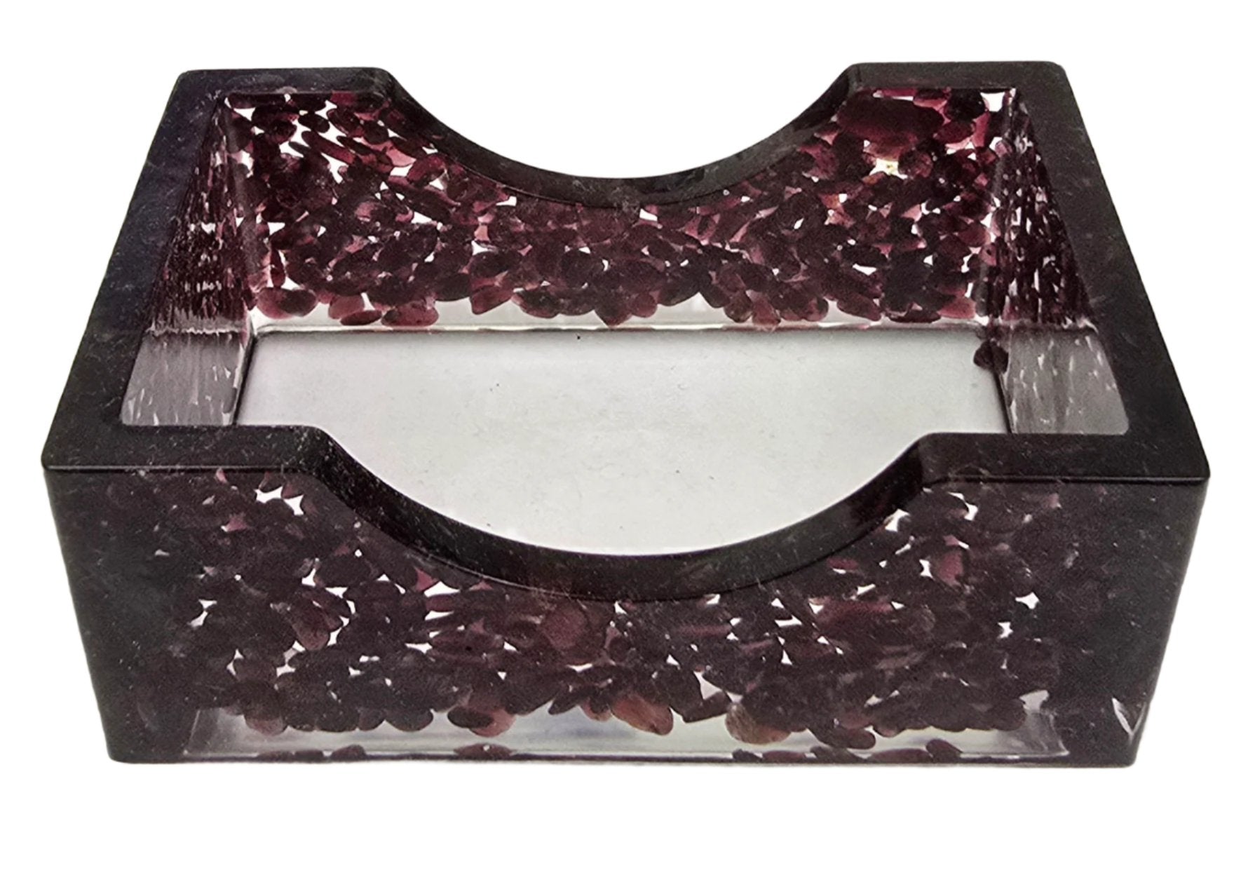 Elevate your home decor with our Square Coaster Set - Garnet! Crafted with durable Epoxy and real Garnet chips, each set includes 5 coasters and a holder. The fiery energies of Garnet inspire passion, strength, and creativity while purifying your aura and attracting true love. Add a touch of functional beauty to your space!